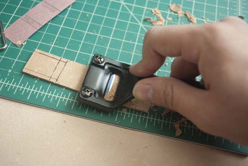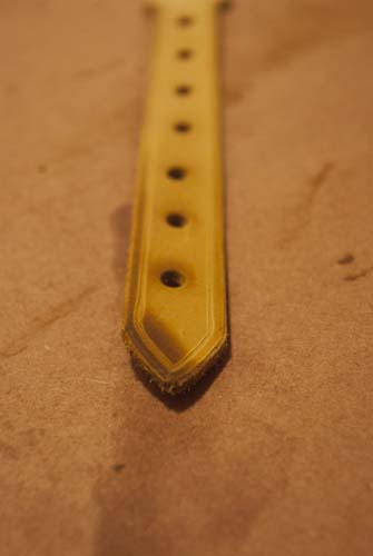 Cutting slots for the two tongues of the main belt buckle was a tricky process of estimation, as you have to factor