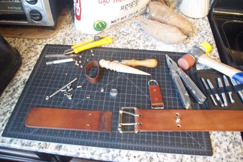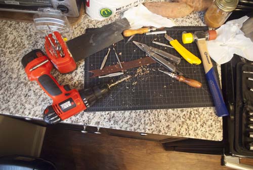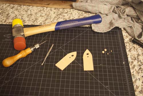 with a nonmetallic hammer until it goes through. This cuts the leather, while also slowly dulling the edges of the
