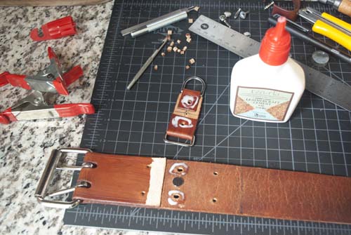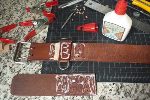 edge of the belt tongue. Thankfully this kind of contact cement is pretty forgiving when attacked with a damp