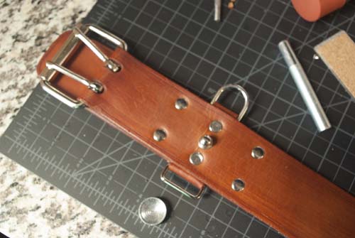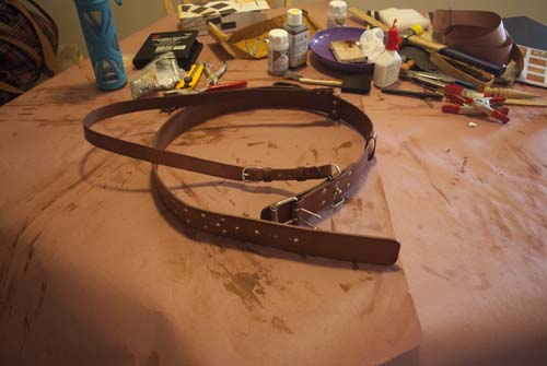 At this point, the whole apparatus was basically complete aside from the holes for the buckle tongues and for the
