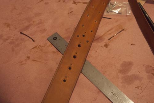 and cutting the 7 sets of belt holes (for use around more or less costuming) and their matching post holes.