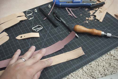 This one’s pretty self-explanatory, but as it turns out, heavy veg-tan cowhide like the stuff being used here tends