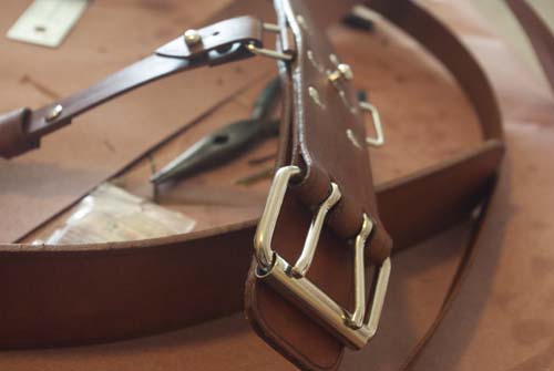 It’s a belt, two-tongued buckle, over-the-shoulder strap, and a little hardware. Can’t be that hard, right? (Famous